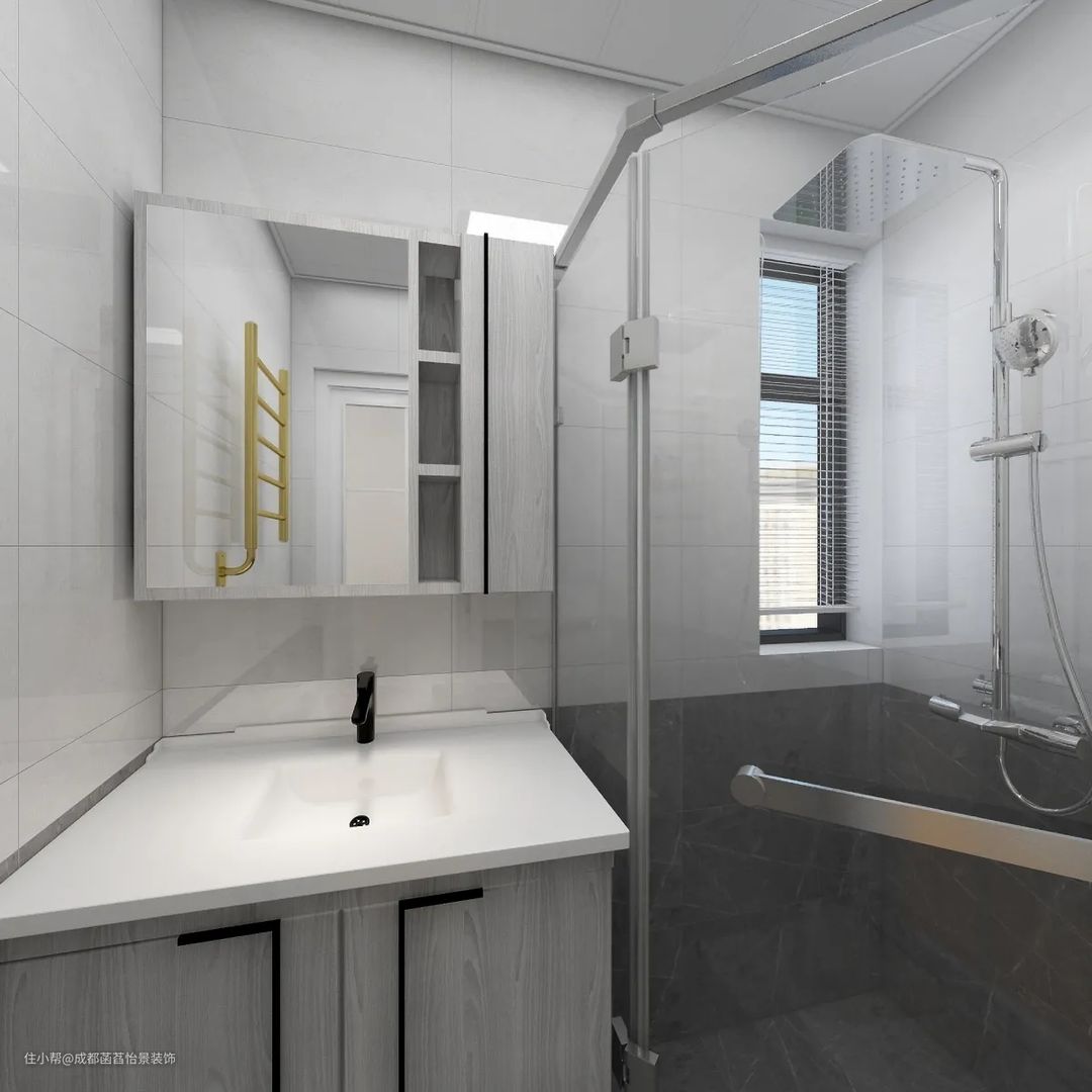 卫生间的干湿分离,以及保证空间的合理性,浴室采用了灰色系单色砖来铺贴,以保证空间的视觉效果,不显局促狭小,简约至此,又不失格调。