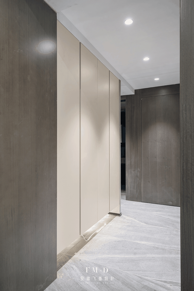 主卧门正对玄关,为保护隐私,特地设计成隐形门。