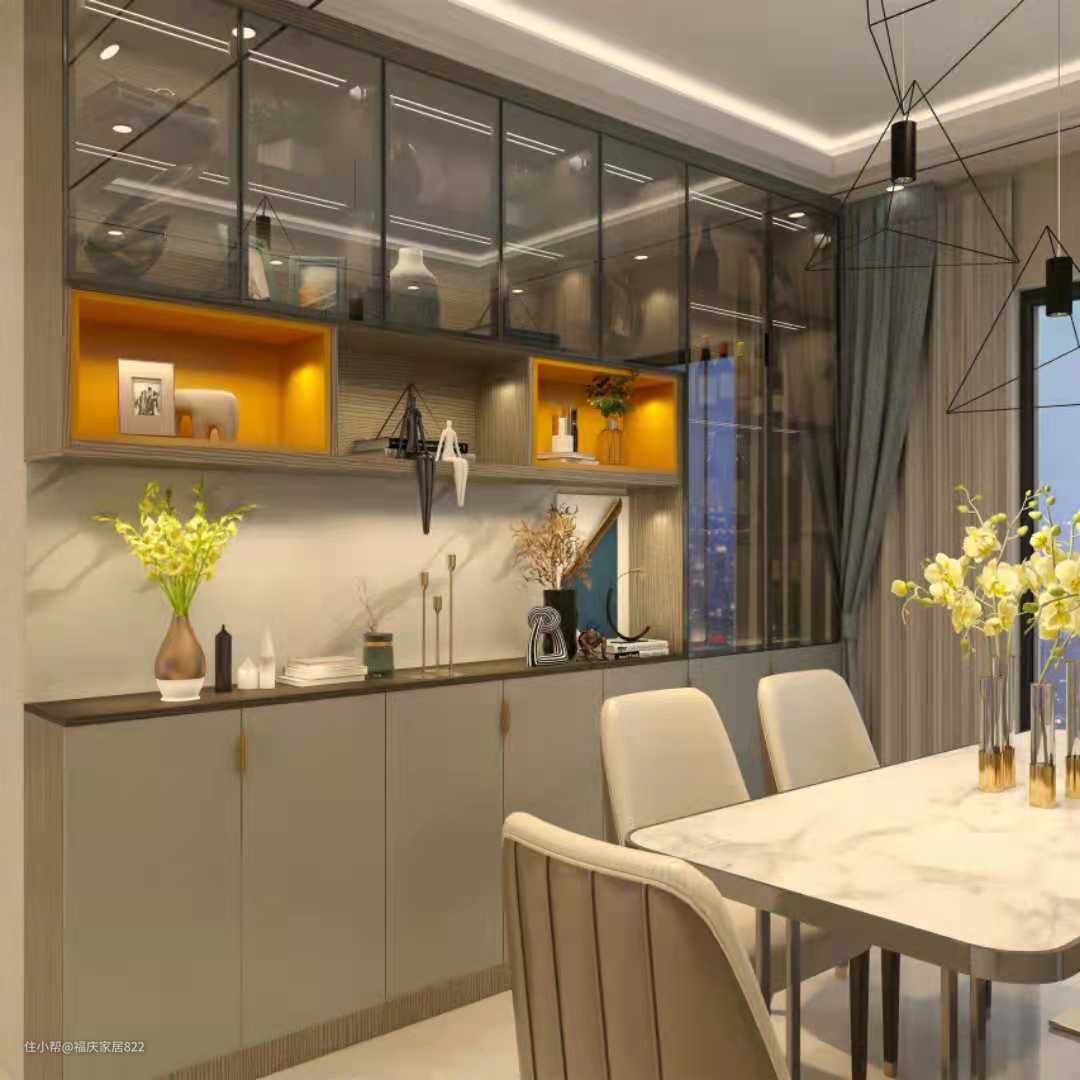 3.在餐边柜的旁边安装玻璃门柜体,这样既可以放置日常所需品,旁边的酒柜存放酒瓶也是比较合适的,不仅能摆放酒又能储物,有些用户也可以装上感应灯,这样给整体的效果就增加了高级视感。