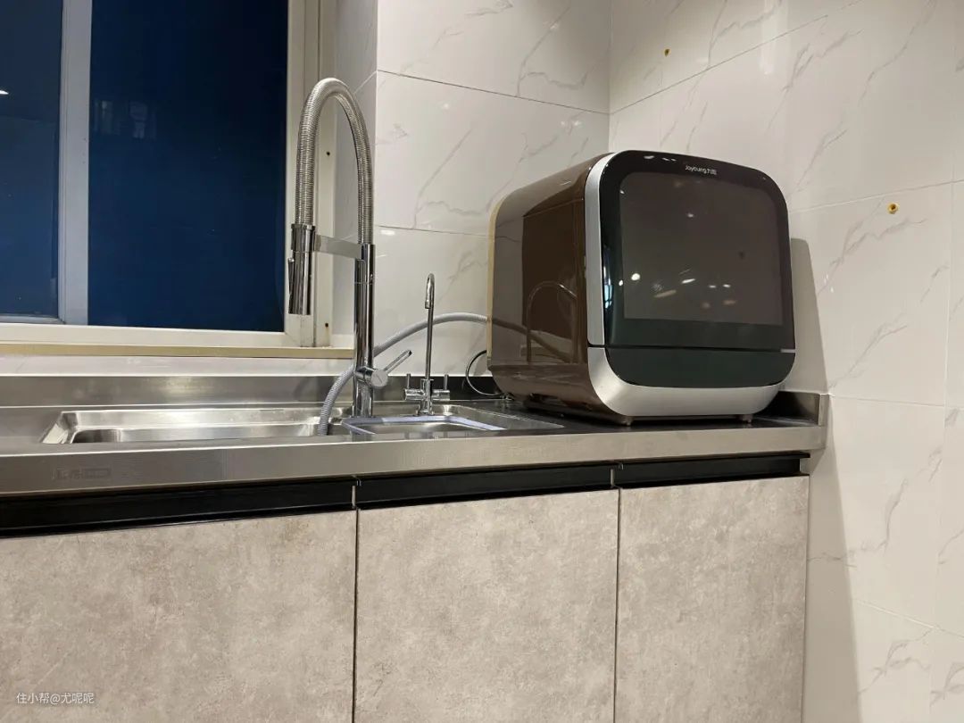 而台面式洗碗机是迷你厨房之选,容量太小基本也就只能洗二口子的日常餐具,不过仅需台面打孔接上下水即可。