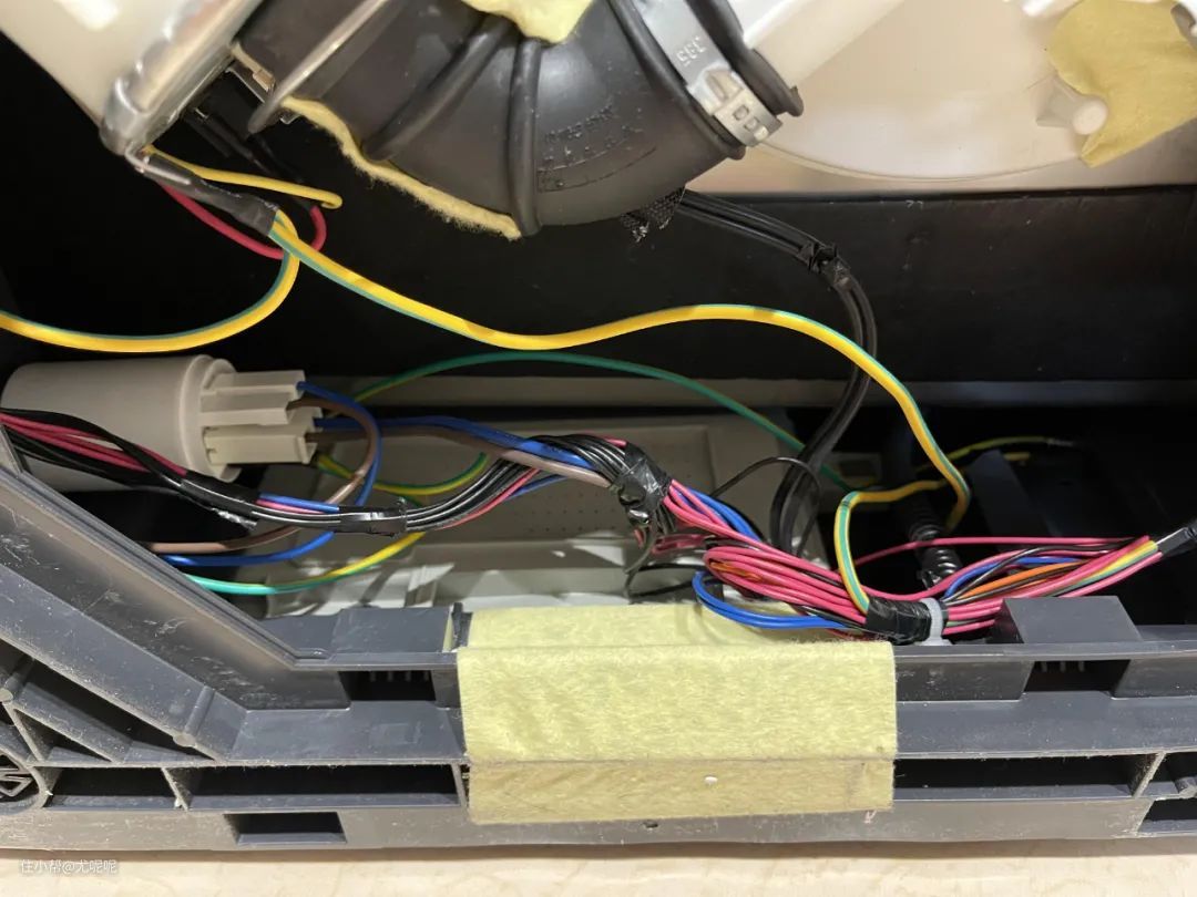 其实还有个细节就是电器件上方的安全设计,海尔这款其实有三层最外层的防火布、底部塑料和内层不锈钢,关键点还又增加了层不锈钢,这样阻燃性高,更安全。而这款美的rx50的为了节省成本,根本没分层就是一整块塑料模块,同时担任内腔底部和机器底板。