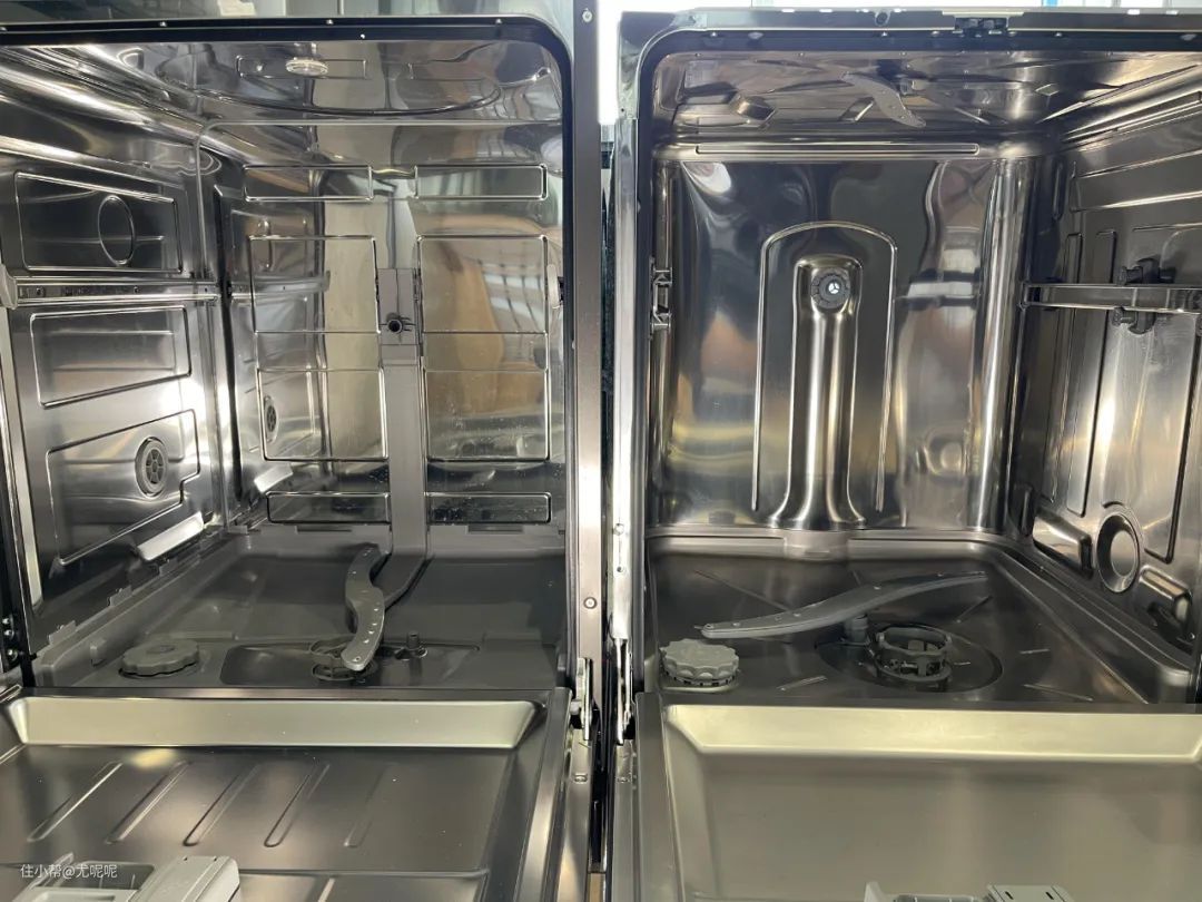 当然13套的海尔晶彩和美的也可以进行分区洗,不过方式多少有区别。海尔是通过分水阀做到水路独立,能耗和清洗效率都更加优秀。而美的仅仅是通过改变喷水方式,以及更改清洗时长来实现的。