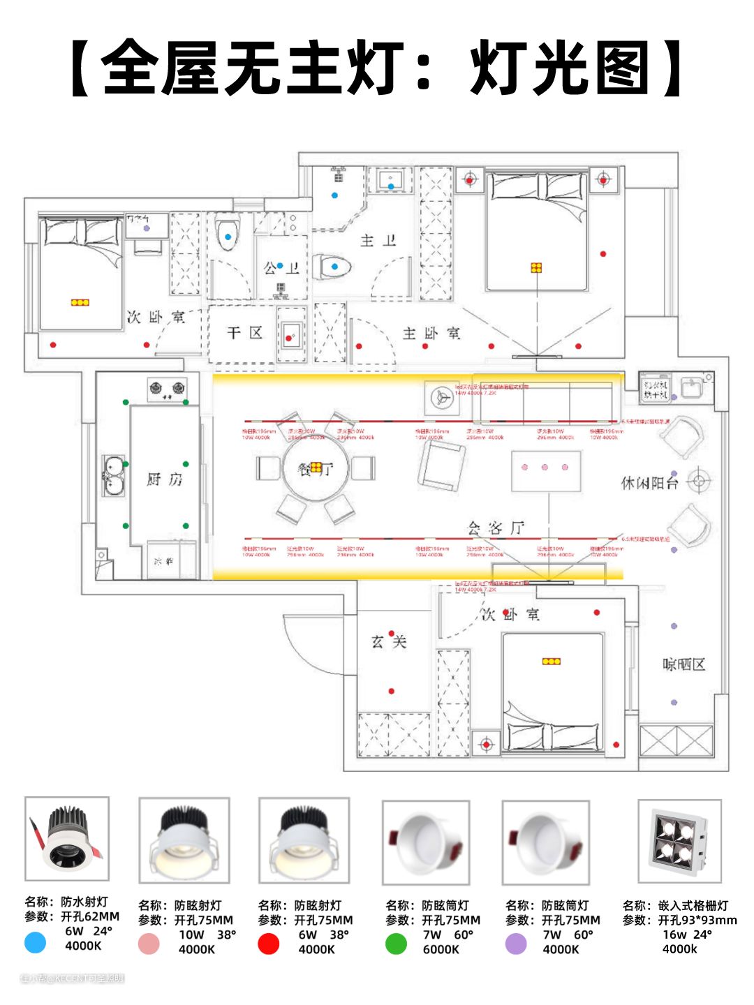 佛山无主灯|103㎡3房2厅2卫灯光设计方案