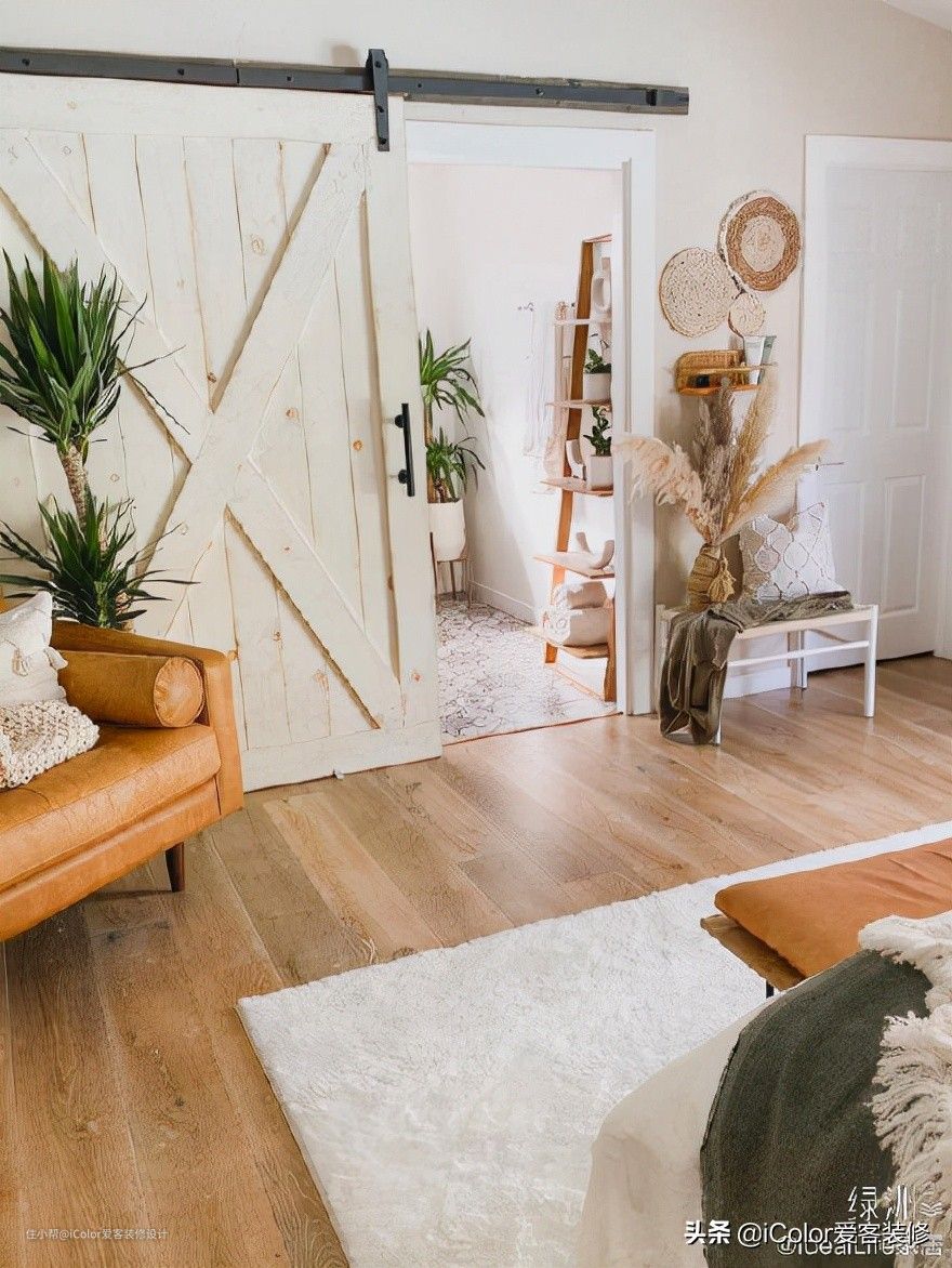 而谷仓门,实际上是一种推拉门,但与传统推拉门不同,它的轨道式外露的,而且是做在墙面上的,推开不占用门洞空间,非常适合小门洞。