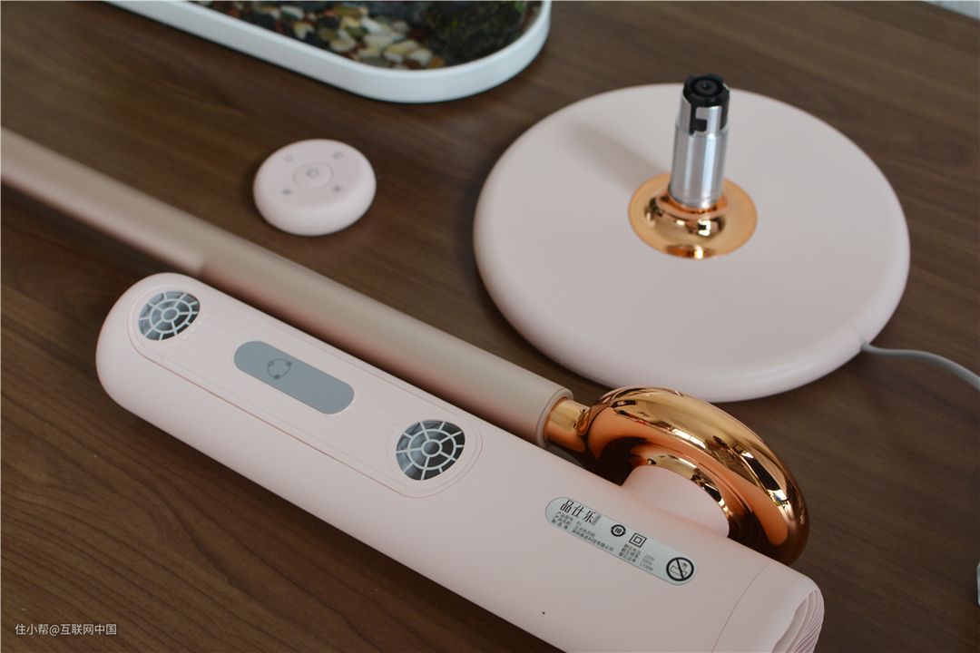 在控制这款吹风机的时候,也有很多方式。其实最方便的就是用遥控器,这样自己在吹头发的时候也能随时进行调整。它的遥控器很小,呈圆盘状,上面的各种按钮可以调节模式、冷热风、温度等。如果平时不用遥控器,可以直接把它放在机体转轴部位,这里专门设计了一个放遥控器的地方,这样就能让自己随时找到它。