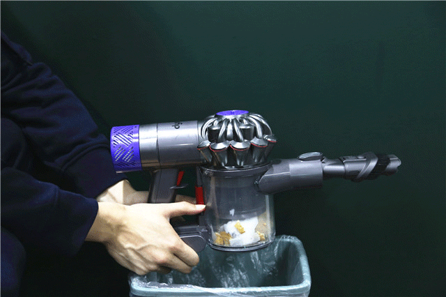 ▲我们再来看看集尘盒,首先集尘盒的设计从一般其他品牌的抽拉式开关改为了单手即可操作的一键弹出。