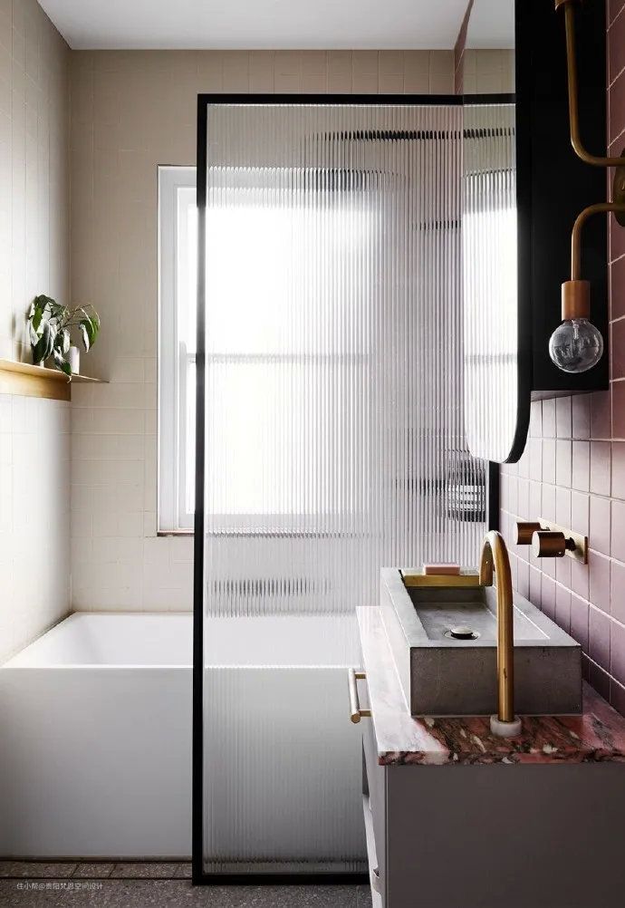 长虹玻璃的竖线条纹理,可以直接从视觉上拉伸空间,优秀的纵深感能把你家层高拉升不止一点点。最常见的长虹玻璃元素体现在门窗上,玻璃推拉门、平开门、折叠门等等。就算局部用在门上,也能起到拉高颜值的超强装饰性。