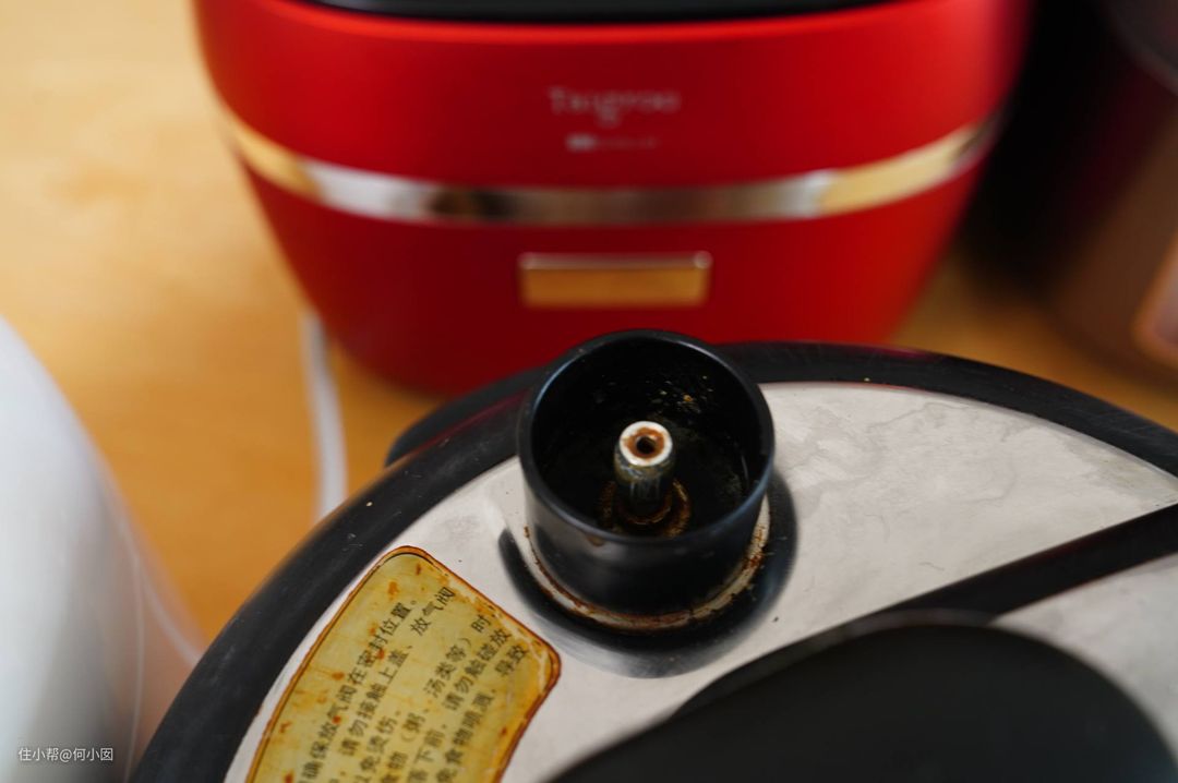 电压力锅的限压阀可以取下来清洗,但是因为结构问题,很能藏污纳垢,用了几次之后,就是不想洗不想用的状态了,下图是九阳的限压阀
