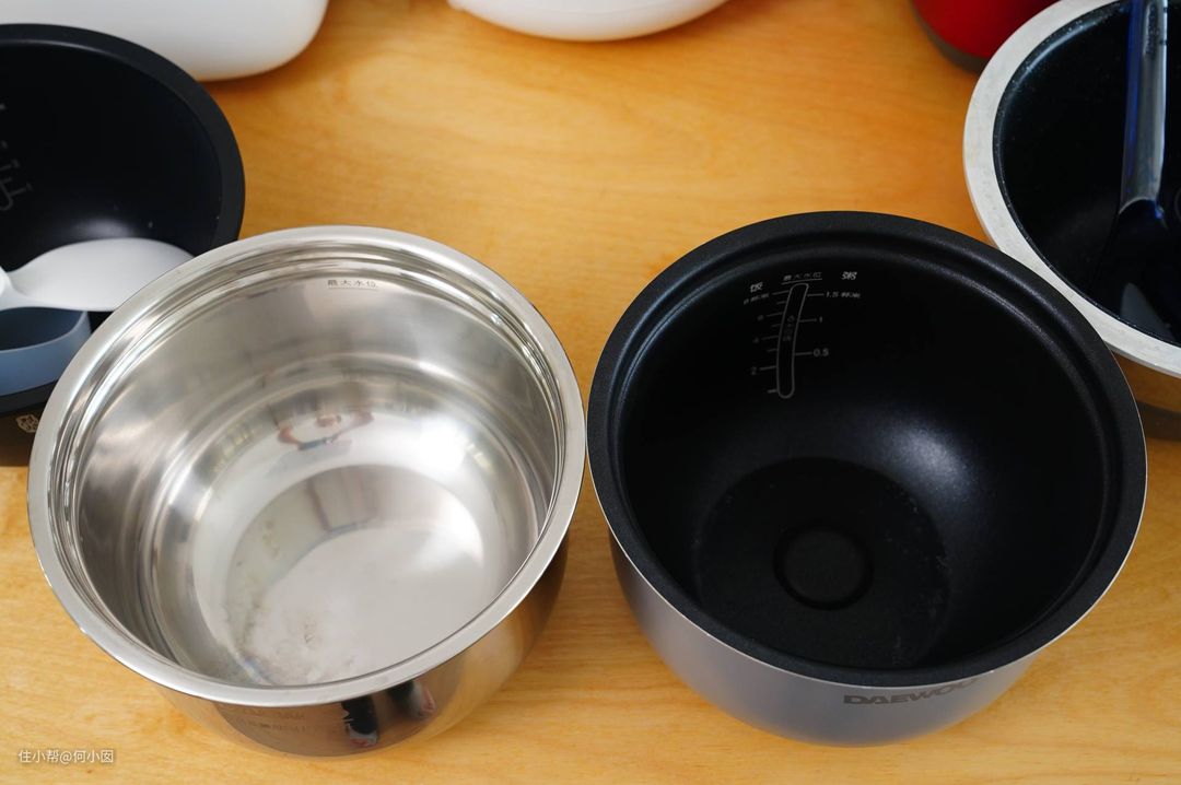 放入三个锅的内胆,米家1S是单内胆,就直接用煮饭的铁釜内胆了,另外两口锅都是用不锈钢内胆