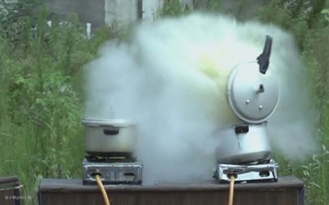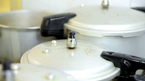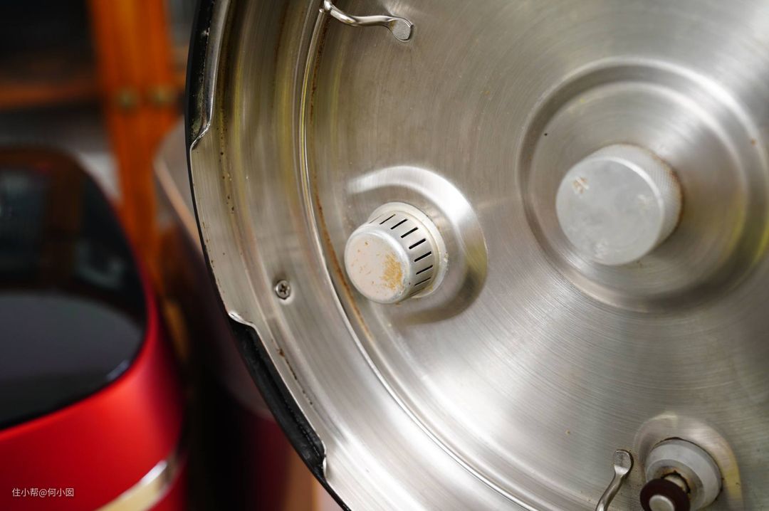 泄压的安全性也是压力锅必须考虑的,这种老式的压力锅泄压的时候,需要手动取下限压阀,让压力通过外喷的气流泄掉,不仅非常容易烫伤人,声音也很响,而且会造成厨房里短时间内大量的湿气堆积,怎么看也是非常不安全的