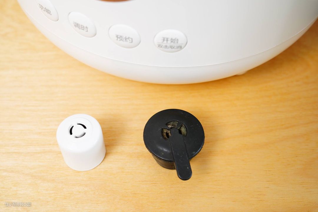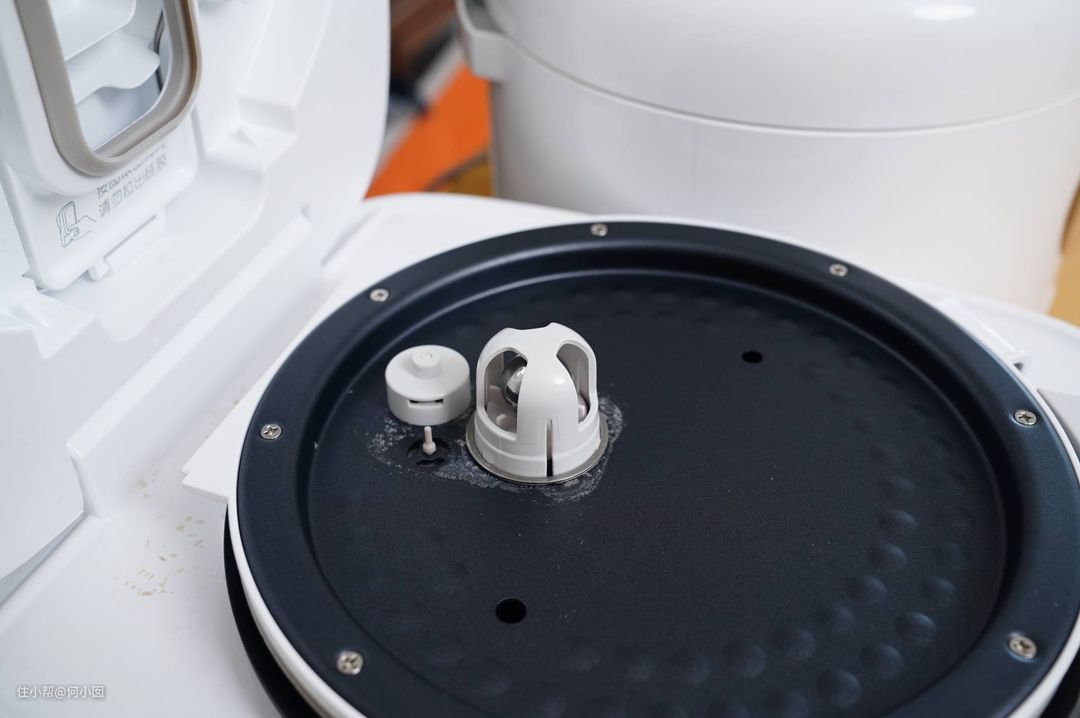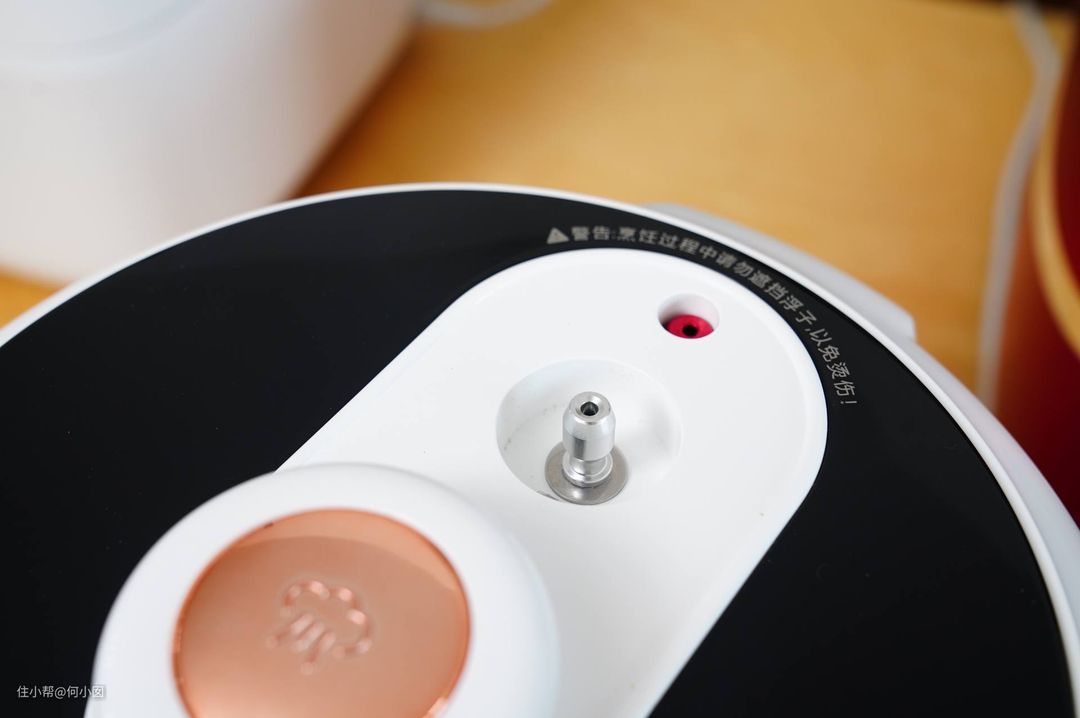 而小米1S这款带微压的电饭煲这点就设计得不好,是没有安全锁设计的,我第一次使用的时候由于不清楚微压电饭煲是不能中途开盖的,导致我熬粥的中途强行开盖,当时那个场面。。喷了一台面的粥,幸好是微压的,不然我厨房得爆炸了。。下面是小米1S的浮子阀,记得小米1S虽然是微压电饭煲,但是也是有压力的,程序中途不要随意开盖啊!