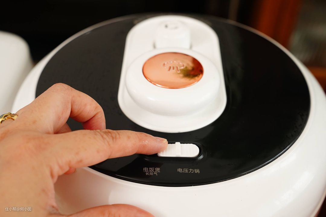 往左拨就是电饭煲模式,还能长排气,往右拨就是压力锅模式