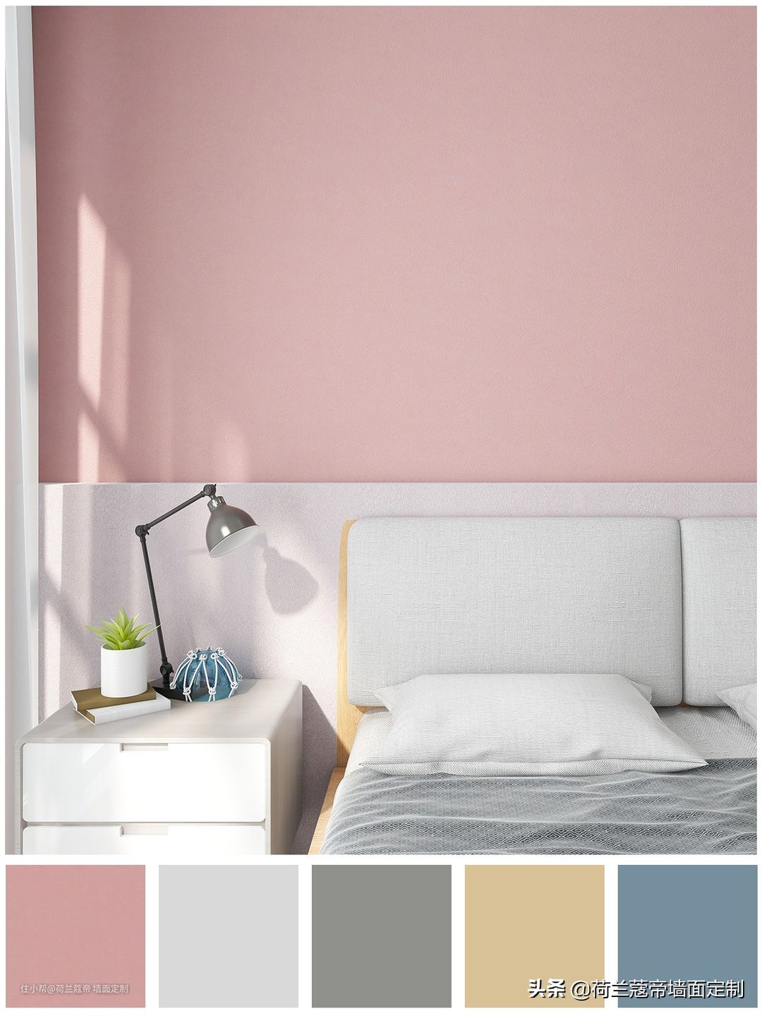 艺术漆 | 艺术涂料 | 墙面漆 | 墙面涂料 | 进口艺术漆 | 网红墙漆 | 卧室配色 | 粉色墙面 | 家居配色 | 配色分享 | 配色推荐 | 艺术漆效果图 | 荷兰蔻帝 | 烟粉色 | 粉色| 可爱系 | 温柔系 | 粉色少女心 | 粉色系 | 少女心