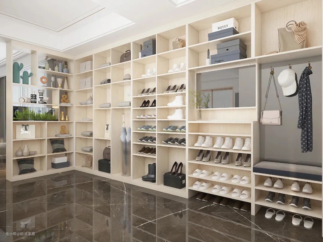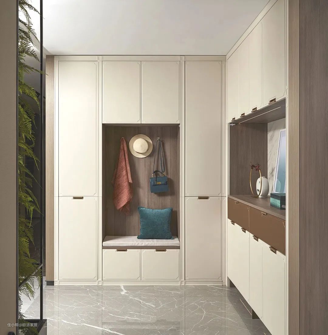 ▲如果独立式玄关的面积足够大,那就太完美啦!赶紧打造一个集衣帽区、换鞋凳、全身镜等功能的超大容量储物间。一进门就可以把东西放到里面,具有更强大的功能性和实用性,小欧好爱。