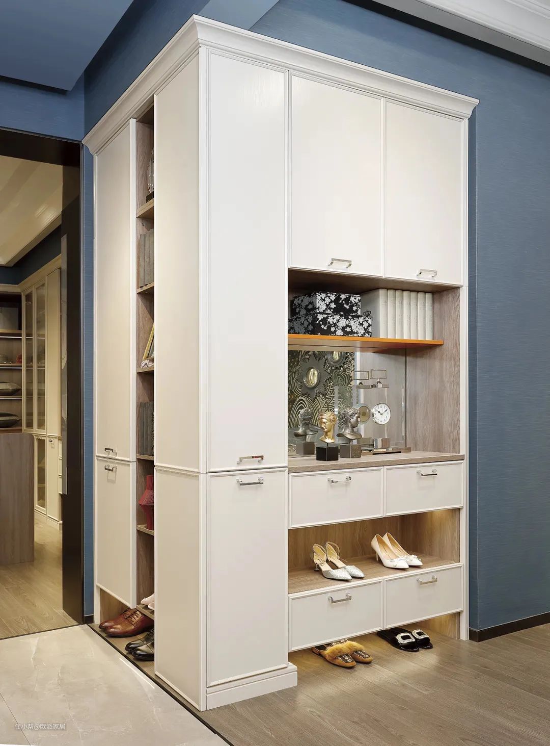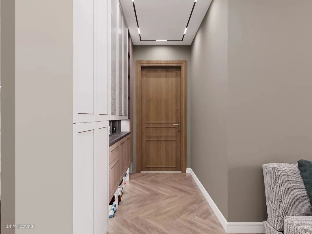 ▲如果家里是走廊式宽玄关,那就太好啦。可以选用一柜到顶的玄关柜设计,收纳能力大大升级。