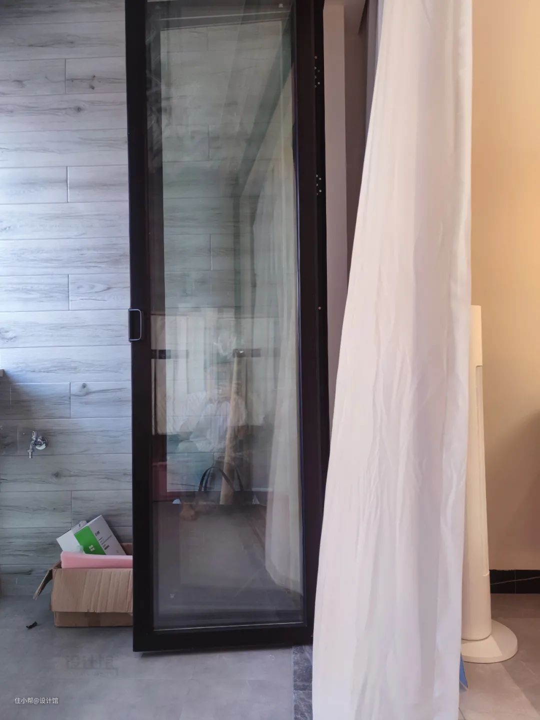 ▲阳台与客厅之间装玻璃推拉门。