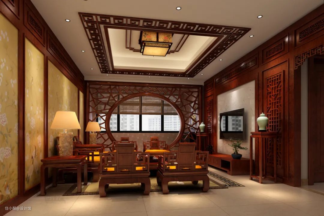 在中式风格中,会有一些比较独特的造型,比如在设计客厅与阳台之间的时候,就可以加入月亮门这样独特的设计,既可以分隔客厅与阳台,又能带来一个意境优雅的设计效果。