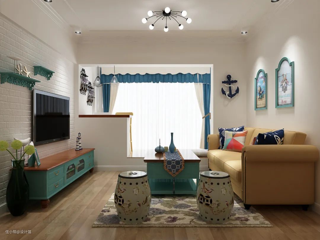 ▲窗帘靠着客厅安装。