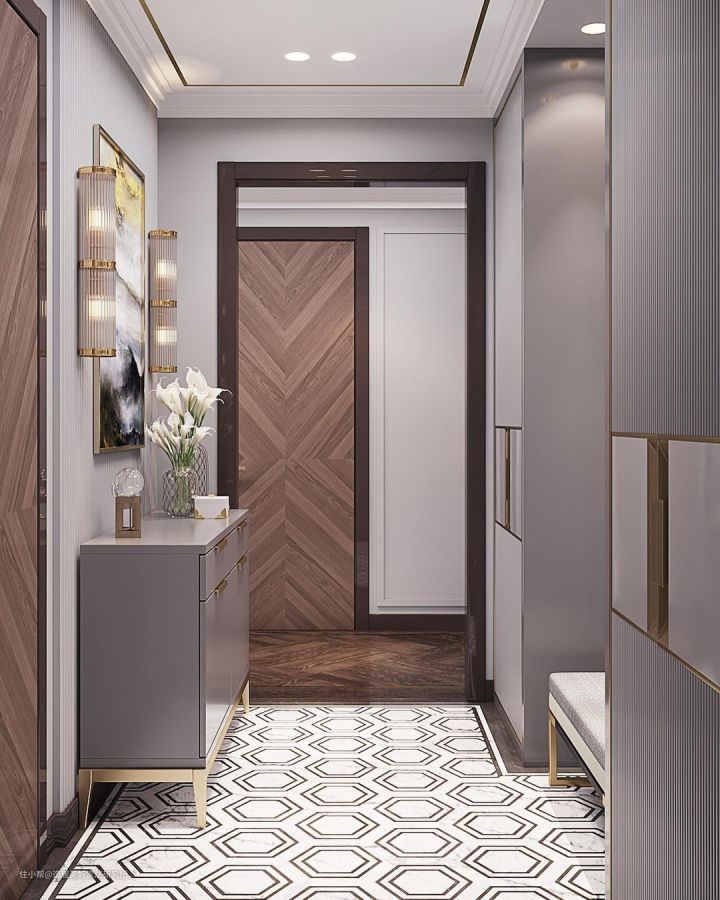 玄关作为一个面积较小的空间,墙面和地面作为大块色彩面,是视觉的聚焦点,所以选择一款个性漂亮的地砖,可以大大提高玄关的档次和美观度,突显个性审美。