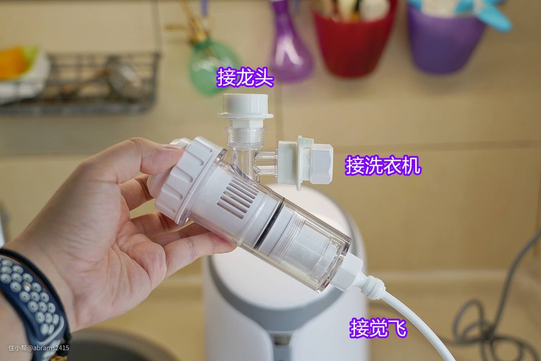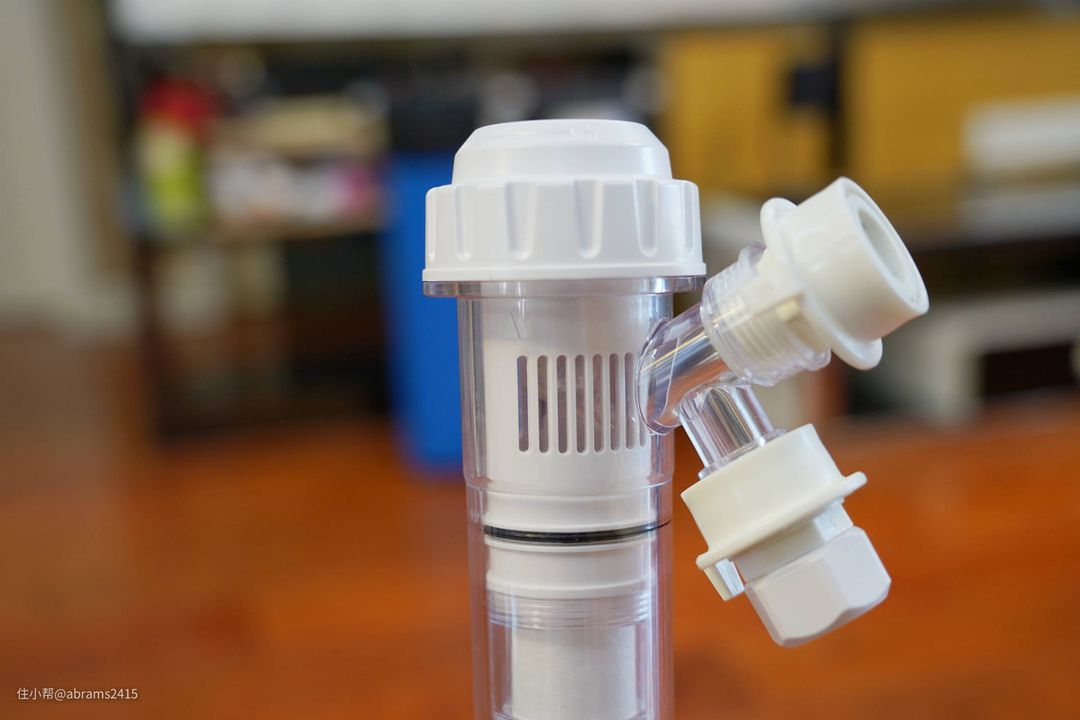 ▲三通内含有pp棉,对于家里没中央净水装置的家庭来说还是挺实用的。进排水都是快接头,安装特别简单。