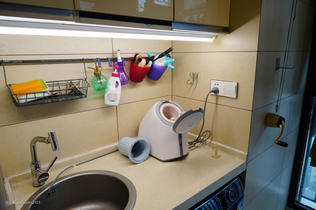 ▲新家阳台宽度有2.1米。所以在洗衣机和烘干机布局上我选择了并列排放。但我女朋友非要让我单独再买一台壁挂式洗衣机,因为她非常讨厌我目前内衣、内裤、臭袜子和外衣一股脑混洗。