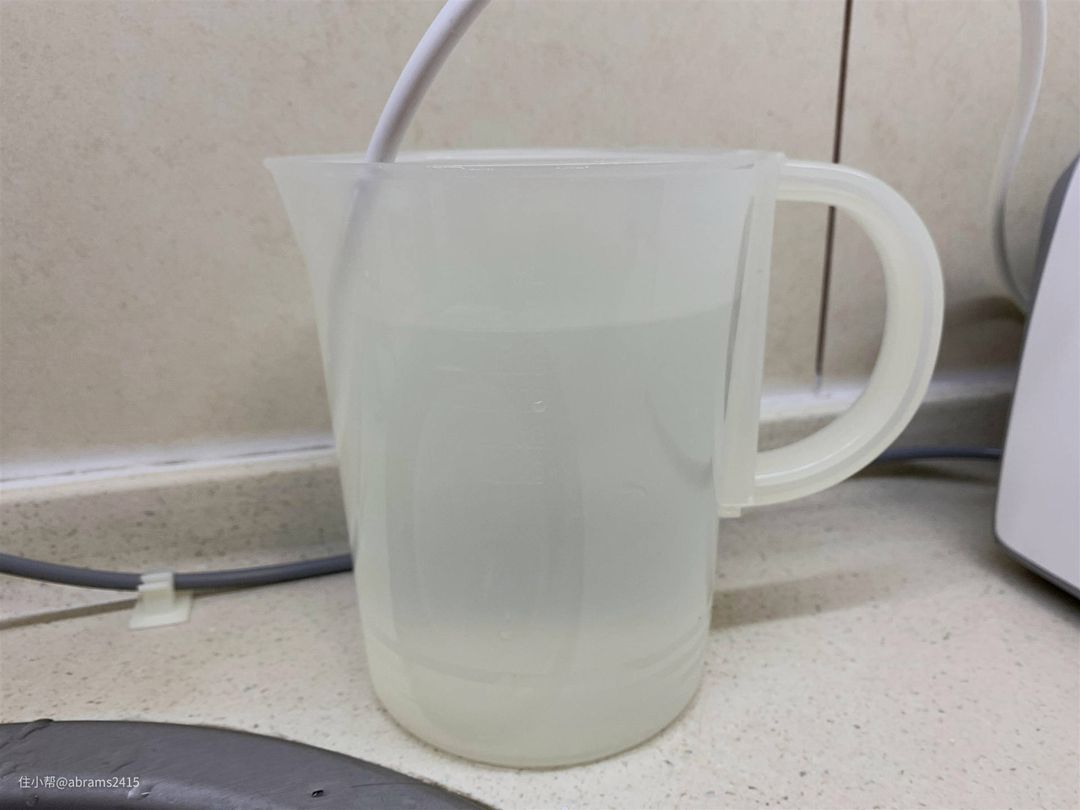 ▲在常温净洗模式下,使用带刻度线的杯子,让洗衣机自吸。一个洗涤程序下来测得耗水1.4升。相比在洗澡时顺便洗内裤,这实在是太省水了。因为它一次最多能洗三条内裤。耗水基本可忽略不计。