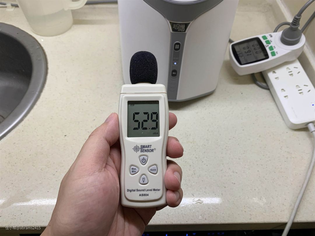▲洗衣机工作时,距离洗衣机不到20cm距离。实测噪音在52dB左右,并不会对生活起居产生太大影响。