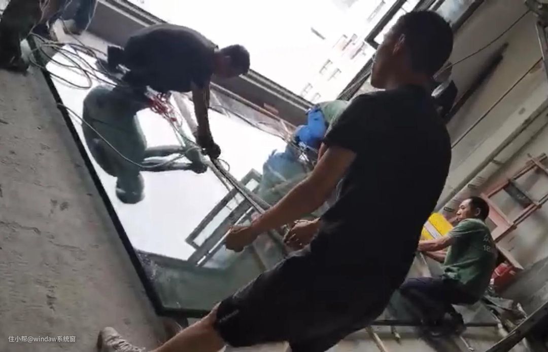 安装只能靠人力,一些超大玻璃可能重达1吨以上,需要10几个人合力抬装,又是高空作业,风险可想而知。