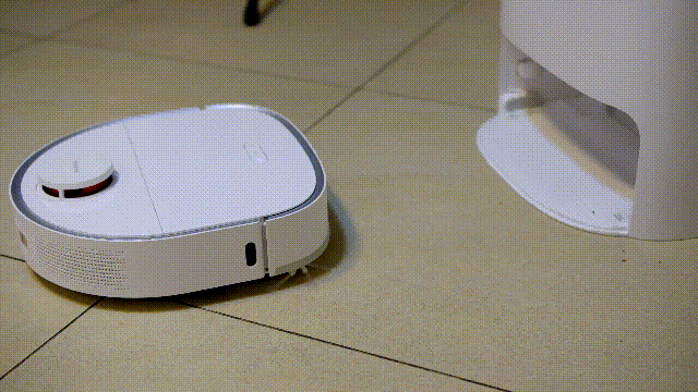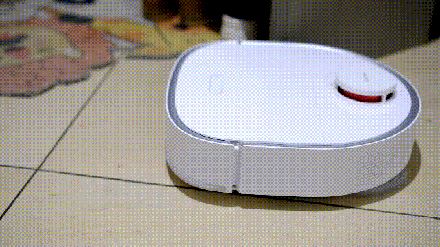 在拖扫过程中,超声波探头可以很有效的识别地毯边缘,避免拖布在地毯区域工作。我家的小地毯边缘非常复杂,W10依然能够很好的识别出来并后退,对于这样的识别能力,我感觉非常不错。(因为GIF大小的关系,下图2倍速)
