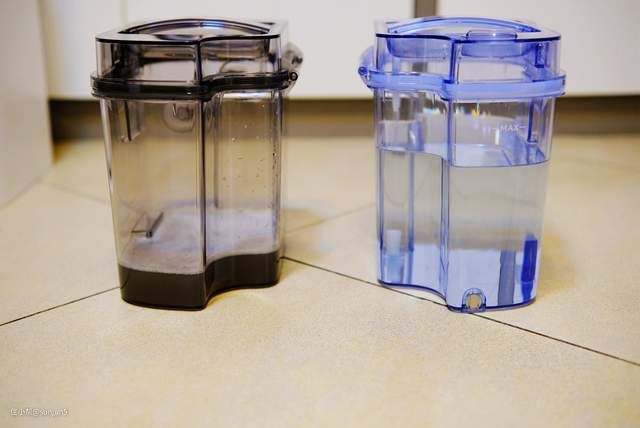 左边的是污水箱,右边的是净水箱,不用看标签,水箱箱体的颜色就表示得很明确了。