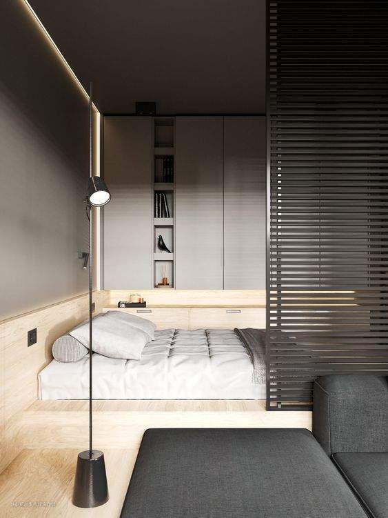 只要能够摆上床垫,哪里都可以是睡觉的地方,因此,床也就成为了非必需品。最常见的选择就是利用地台做床: