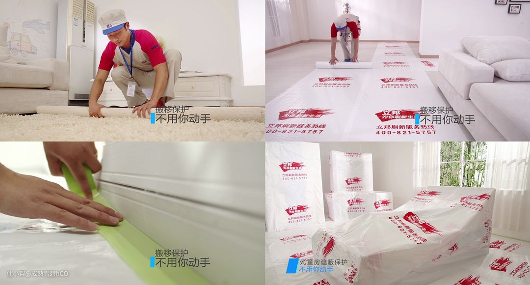 同时,李佳琦还贴心地用视频和“小黑板”为大家划亮点:包含免费检测、制定方案、搬移保护、涂装体系、清洁归位、8大验收、质保服务的一站式服务,便捷高效,助力打造百变家居空间。其中李佳琦还特别提到了搬移保护:“对家具、灯具、电器等物品做一系列的遮蔽保护,遮蔽面面俱到,涂装过程中可以完全放心。”