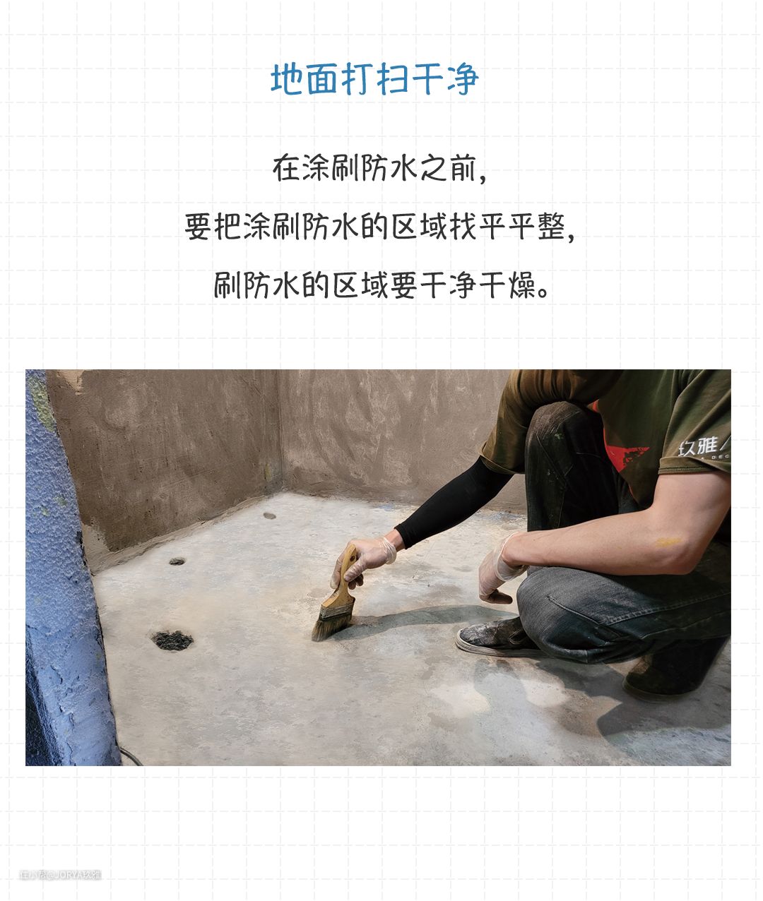 在涂刷防水之前,要把涂刷防水的区域找平平整,刷防水的区域要干净干燥。