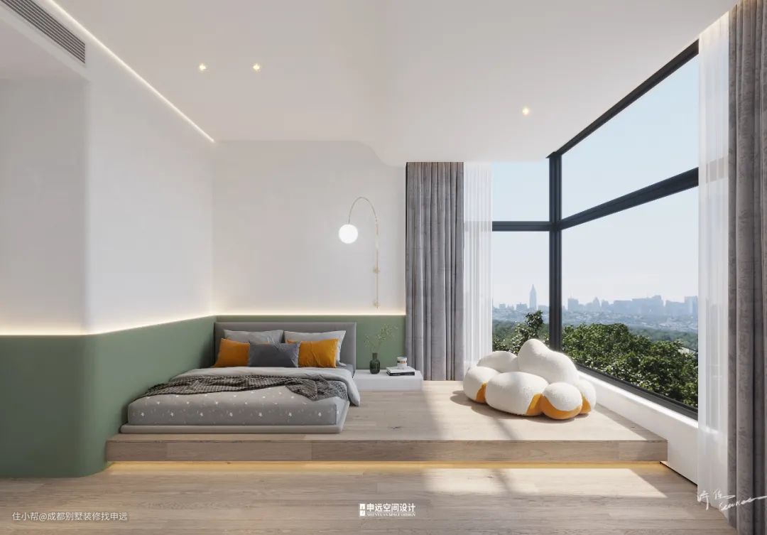 现代人居需要让人有归宿感,人们在杂乱的世界中仿佛在寻找婴儿在母胎中的安全感和舒适感,然而这样的卧室可以让人卸下重担,回归到一种自然轻松的状态,可以轻松安然入睡。
