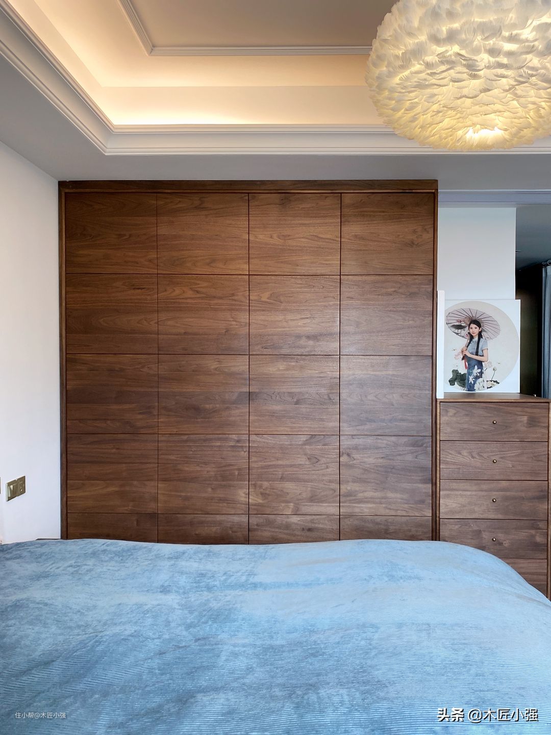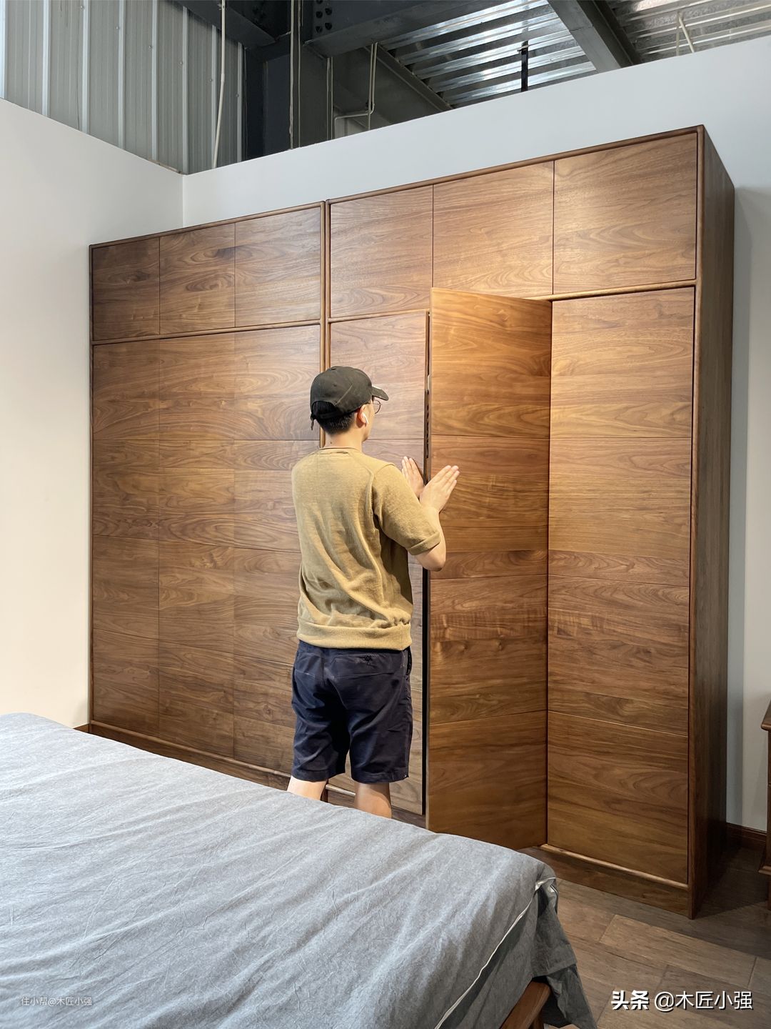 首先必须要说,原木当然可以做平板无框门,我们已经做过无数了,这是毫无疑问的。了解我们家的都知道,无框平板门的衣柜是我们家衣柜的一大特色和亮点,如流去衣柜,飞瀑衣柜,发过无数,再上几张大家看下。