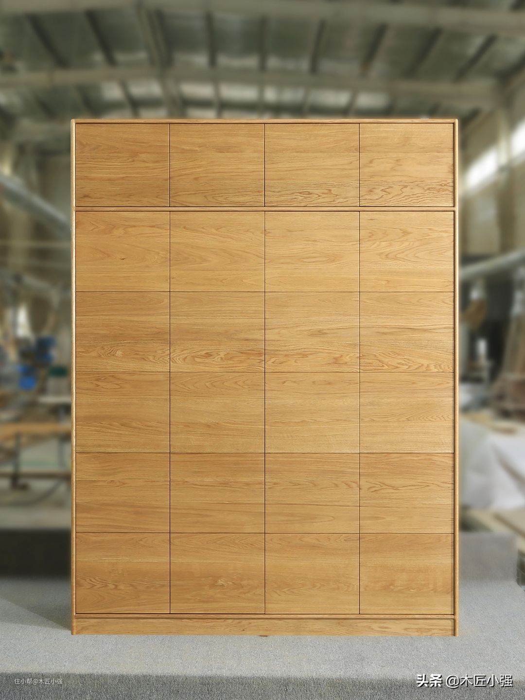 就拿流云衣柜来说,一是要求花纹连续,二是要求不要有太大的色差,所以即便是特级料,每一块木材也是长得不一样的,需要在特级料里再次精选,挑花纹和颜色相近的木料,按序号去拼在一起,这样出来的面板才能浑然一体,才好看。