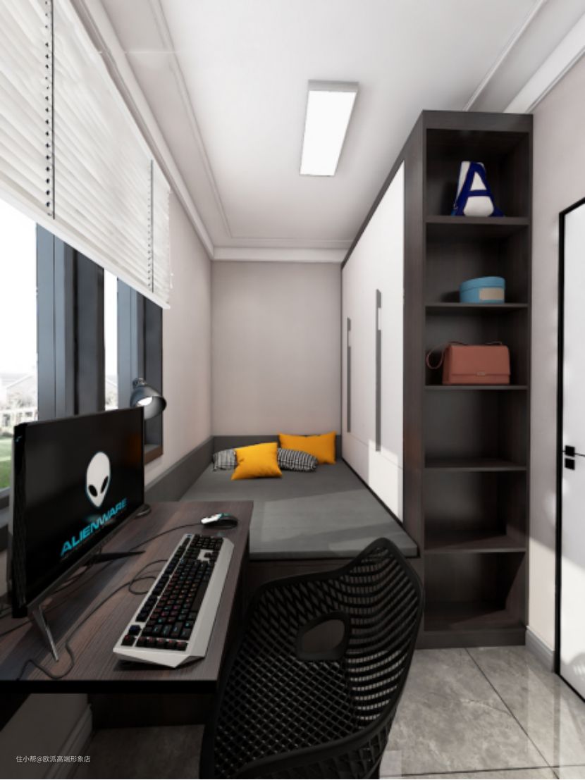 对于空间不是很充足的功能房最适合用榻榻米来解决了,集工作、学习、休息、储物于一体的榻榻米极大的丰富了空间的功能性。