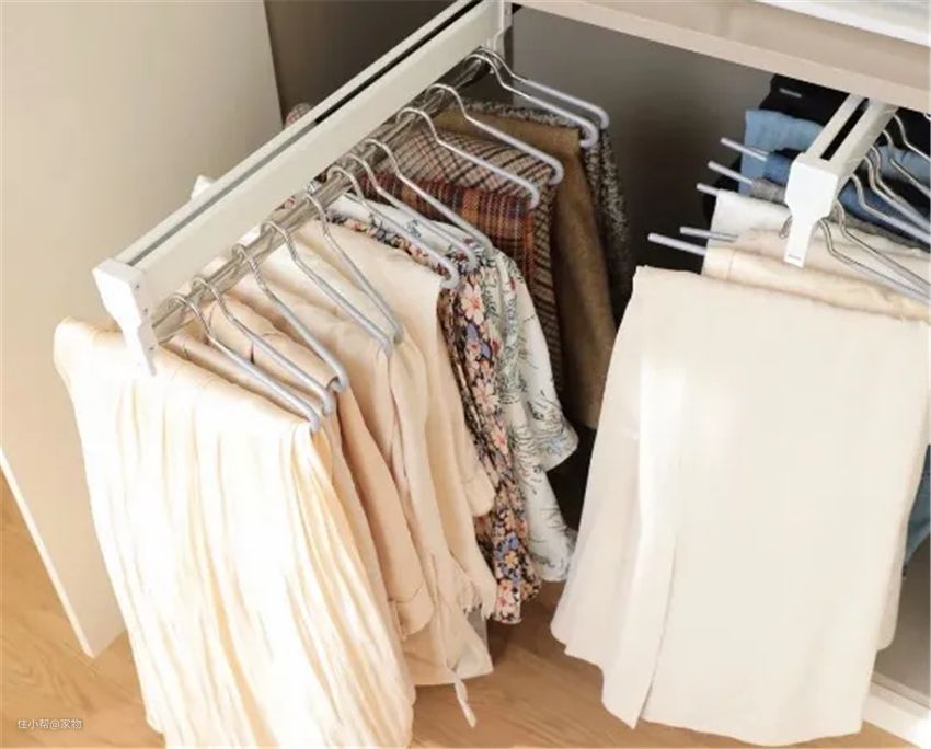 抽屉和裤架是收纳衣服的好帮手,通常做1-2组就足够了,太多反而不实用。