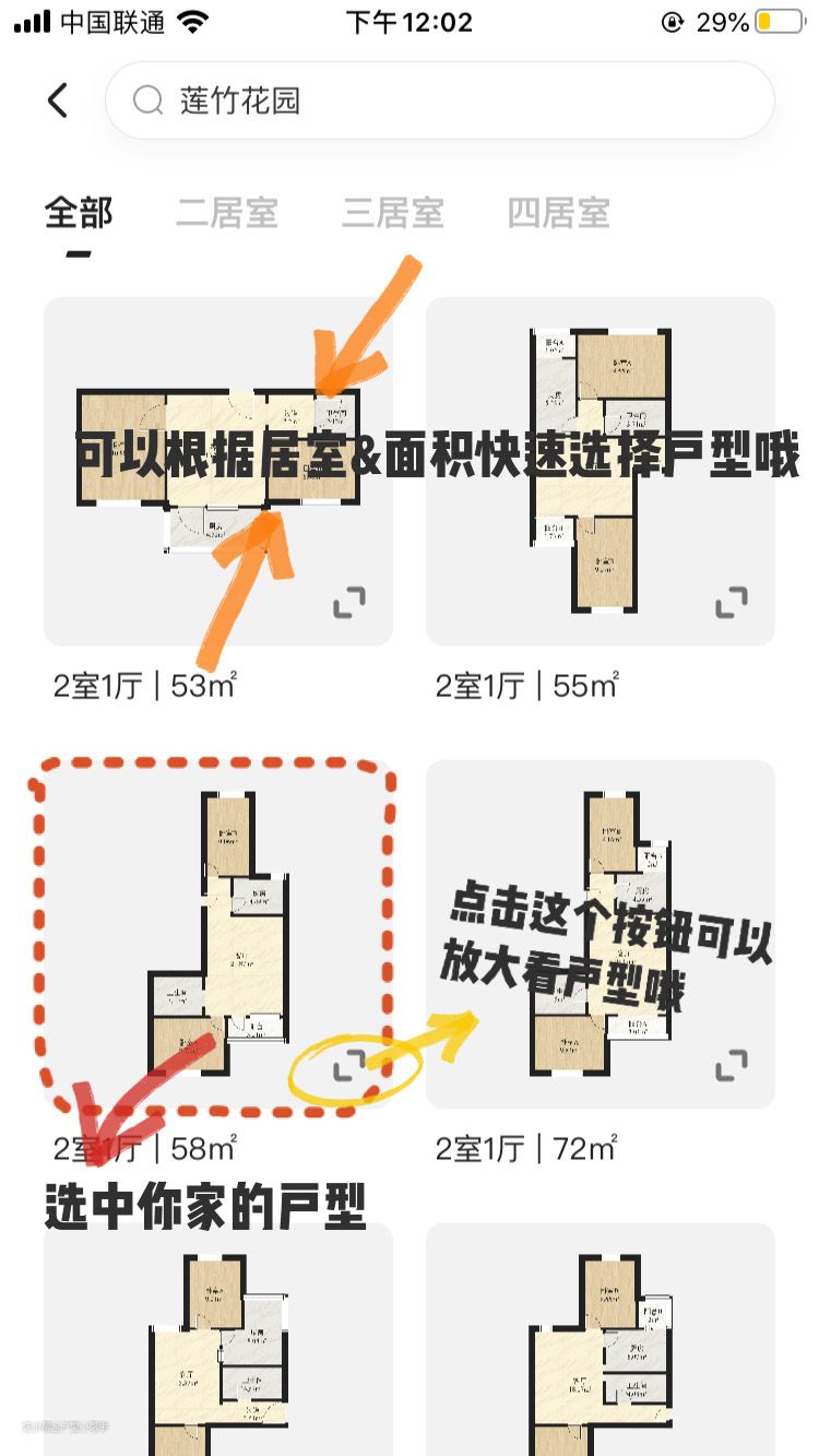3.根据居室类型和面积快速找到你家户型