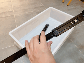 将魔术贴分别粘贴在轨道和抽屉上↓