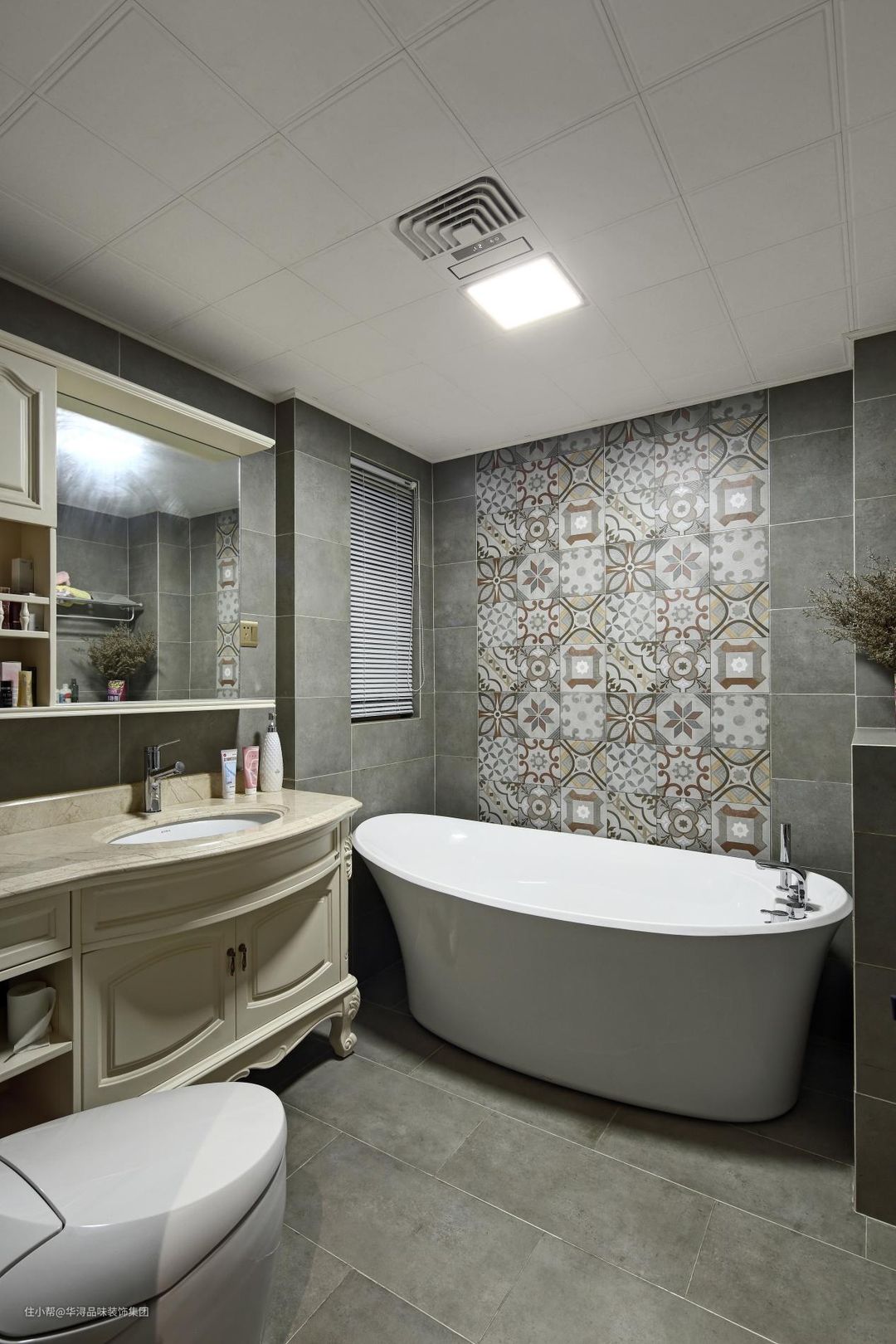 卫生间做了集成吊顶和吸顶灯的设计,这种材质不返潮不吸水。由于空间的原因,智能马桶设置在洗漱台的旁边,看上去倒也不显突兀。百叶窗能够及时给卫生间换气、通气,达到空气流通的目的。靠近里侧留有一处大浴缸,相信每个人都不能拒绝在工作一天之后美美的泡个澡吧。