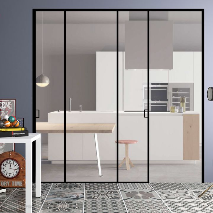 传统的厨房门,大多时候都是平开门形式的,这种设计隔绝效果虽佳,但在美观性、占地面积方面着实不占优势。建议大家尝试下推拉厨房门,这种简约时尚的新型厨房设计,简直让我们的厨房颜值提升一大截。