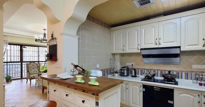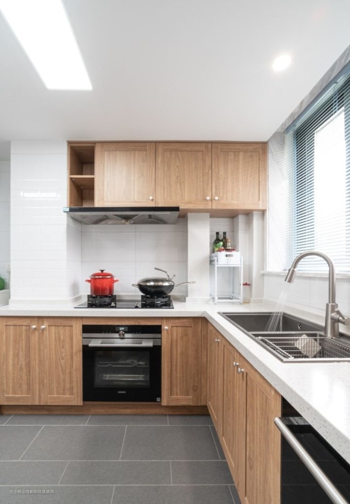 中式厨房,一般油烟都比较重,在瓷砖方面的选用,就尽量不要使用容易藏污纳垢的仿古砖,避免给后期卫生、安全方面造成隐患。