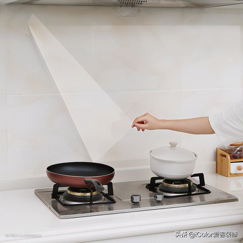 如果嫌瓷砖上容易沾染油污,建议平时可以在油烟机下方的瓷砖墙面上贴一张防油污贴,很便宜,也容易更换。