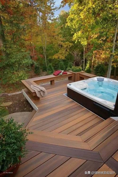 庭院中铺装的运用十分重要,铺装材质的不同给人的视觉感官及感受也带来不同的效果,比如石材属于冷调子,而木平台就属于暖色调,学过绘画的人都知道,冷暖色调的合理搭配才能使得空间变的有滋有味,且使用感受的多样性也是设计者及使用者所追求的,比较千篇一律的东西谁都会厌烦,这里找了一些不错的木铺装在庭院中的案例,希望对你有用。