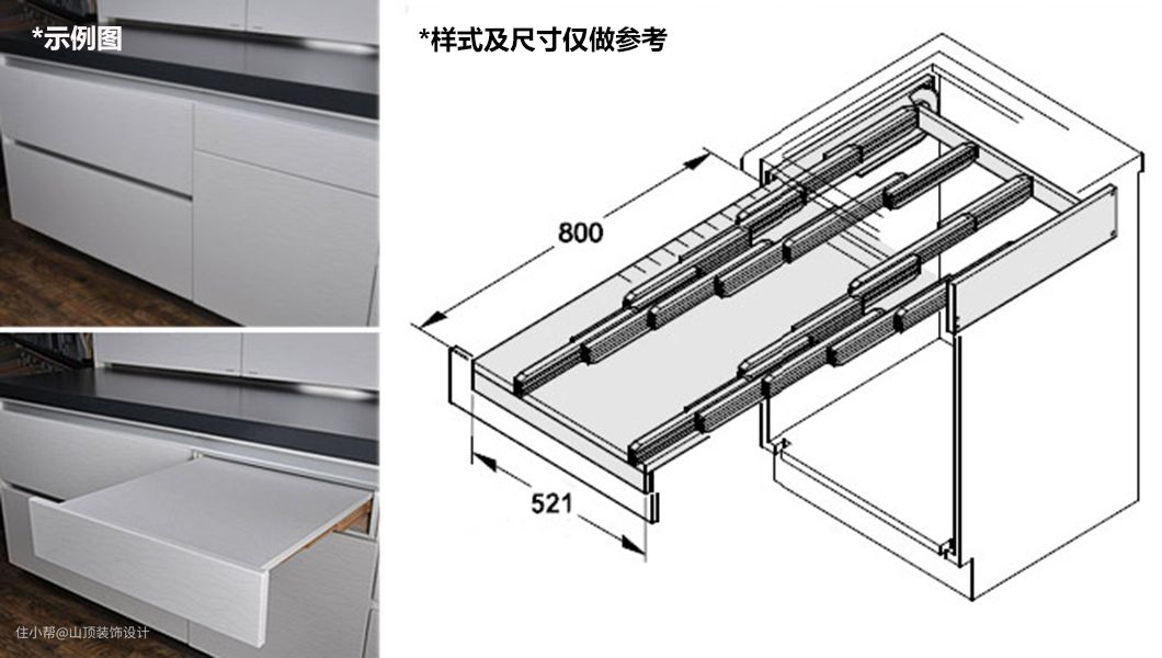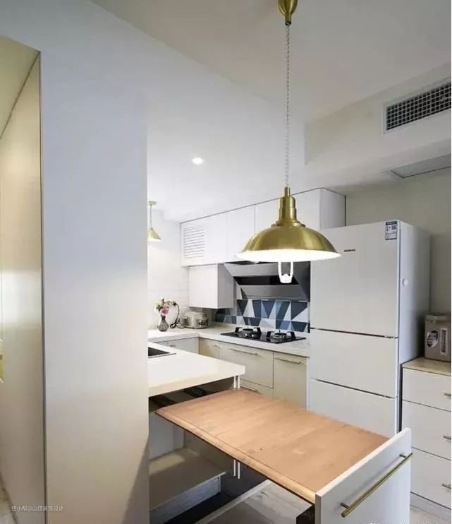 如果你也有这样的困扰,不妨考虑定制一个隐藏式的伸缩台面,其平时只需占用厨房一个抽屉的空间,使用时再拉出来就行,实用价值还是蛮高的。
