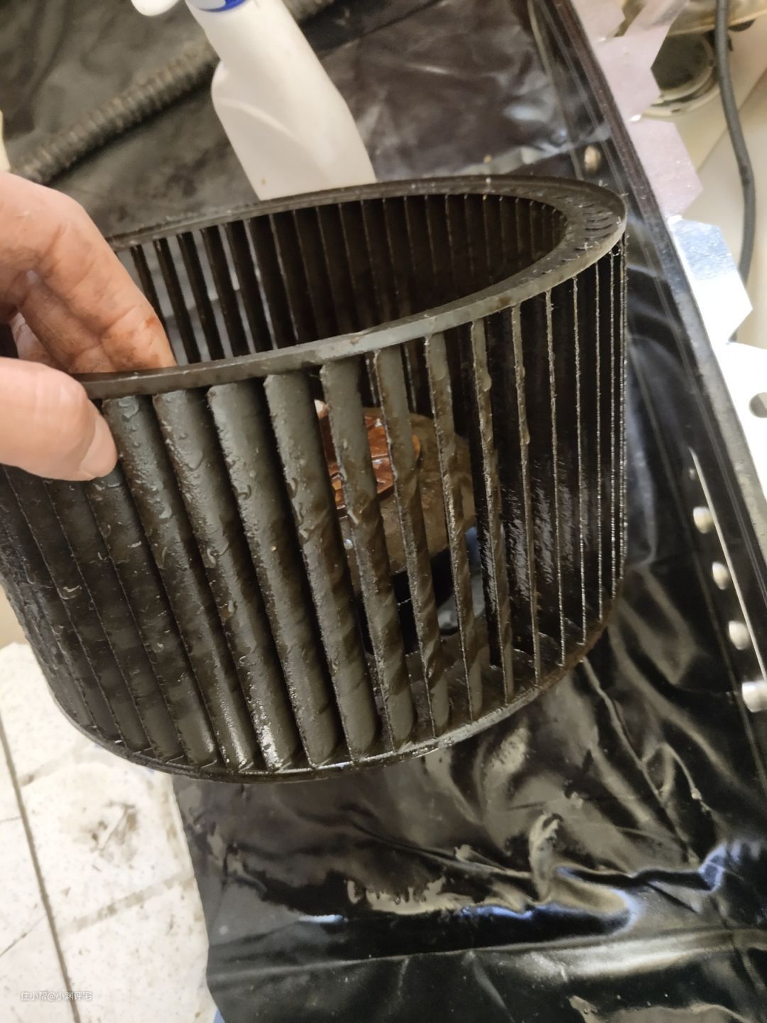 另一种是高温离心加速清洗,说白了就是把油甩出去。下雨的时候我们会打伞,旋转雨伞,就会把伞上的雨滴甩出去。这种清洗功能也是如此,先对叶轮进行加热,使叶轮上的油脂融化。