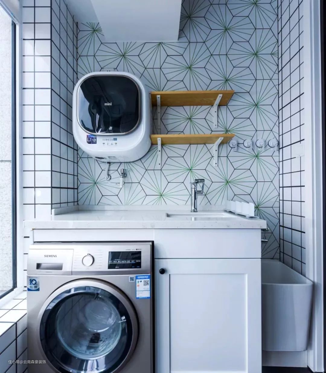 1、洗衣机、烘干机可能没放在卫生间而放在这,需要三孔插座带开关