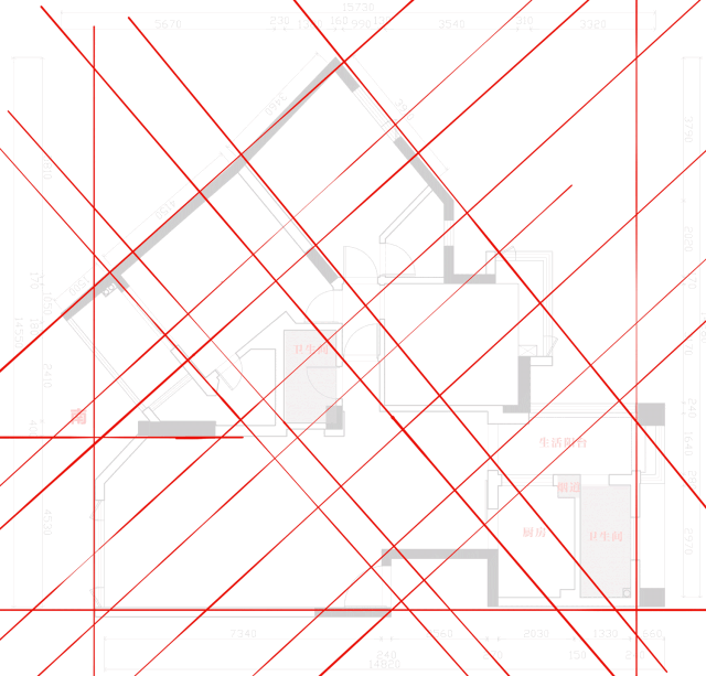C. 线性切割:是户型优化中最好用的一种方法,简而言之就是将空间像切块一样切割,PS要注意:尺度,轴线,功能分区,空间均衡性,动线最短原则。