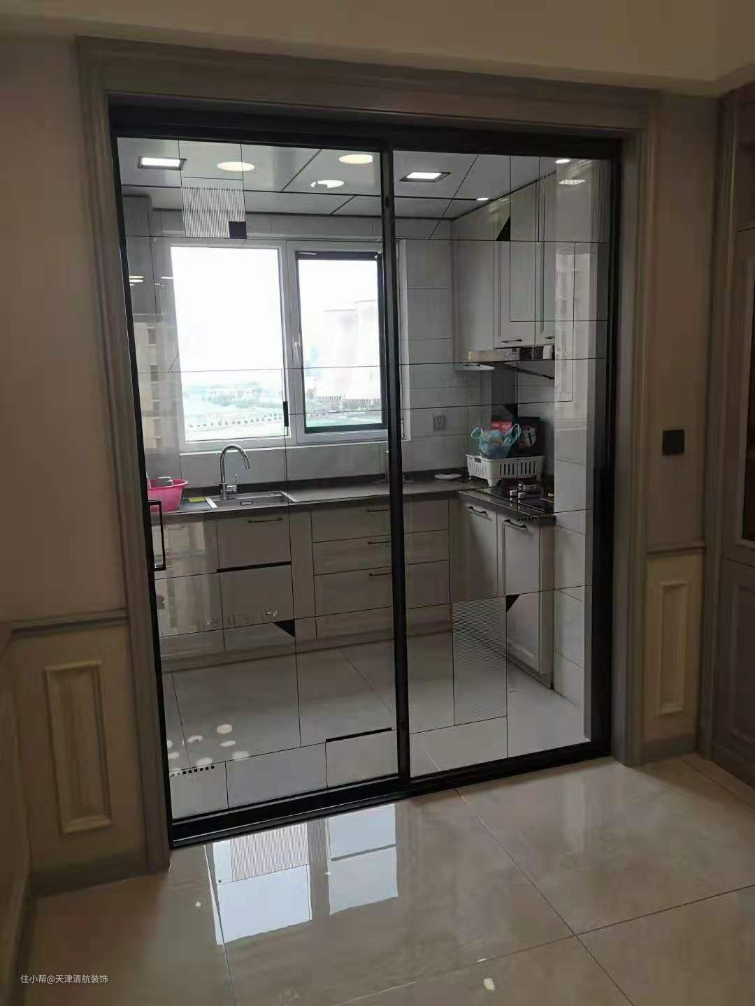 厨房的推拉门,扮演着空界定的角色,而玻璃上的特殊纹路,又显得整个空间呈现活泼的气氛。